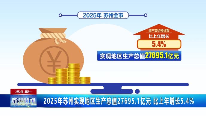 2025年蘇州實(shí)現(xiàn)地區(qū)生產(chǎn)總值27695.1億元 比上年增長(zhǎng)5.4%
